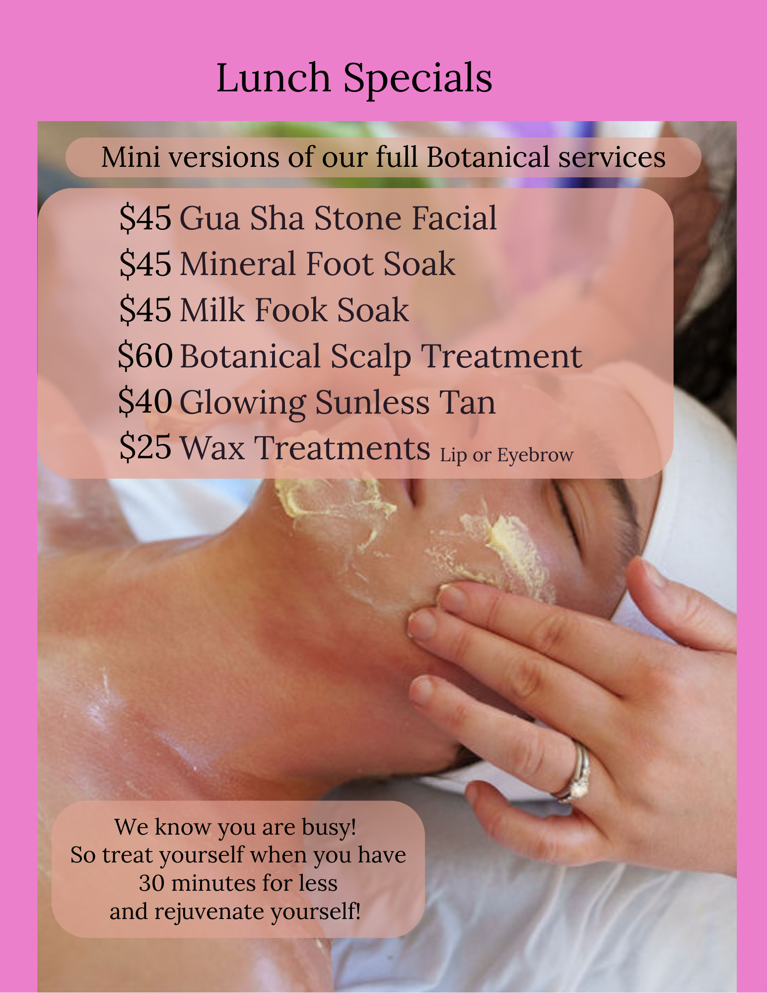 Lunch Specials are not just for Noon Hour, these are shortened versions of amazing services created for your busy lifestyle.