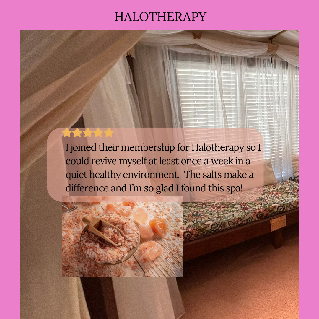 What is Halotherapy? It is a relaxing Salt infused break to improve breathing, allergies and more. Our Salt room is a place to decompress and reinvigorate yourself.